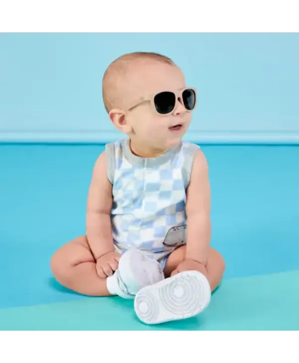 Our Eco Collection with the stylish Navigator frame in a soft sand color, perfect for your little trendsetter. Made from 100% recycled, ocean-bound plastic, these eco-friendly sunglasses not only provide exceptional UV protection but also contribute to reducing plastic pollution and safeguarding the planet. With a blend of fashion and sustainability, these sunnies are the ideal way to protect your child's eyes while making a meaningful environmental impact.