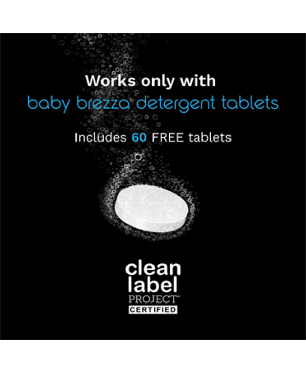 - FREE 60 ct. Detergent Tablets Pack Included: Only works with baby-safe Baby Brezza Detergent Tablets.