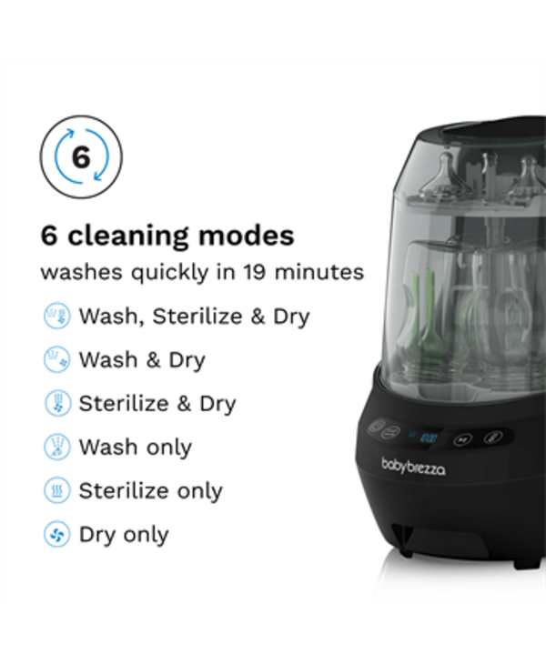 - Choose from 6 Cleaning Modes: Wash, Sterilize & Dry; Wash & Dry; Wash Only; Sterilize & Dry; Sterilize Only; Dry Only. In a hurry? "Wash Only" cycle takes only 19 minutes!