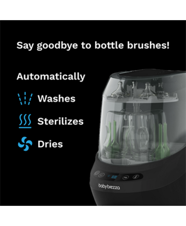- ONLY BOTTLE WASHER PROVEN TO REMOVE 100% OF MILK RESIDUE. Independent lab testing showed that only the Baby Brezza Bottle Washer removed 100% of milk residue from bottles after a full wash, sterilize & dry cycle while washers from other brands left some milk residue behind on bottles after a complete cycle.