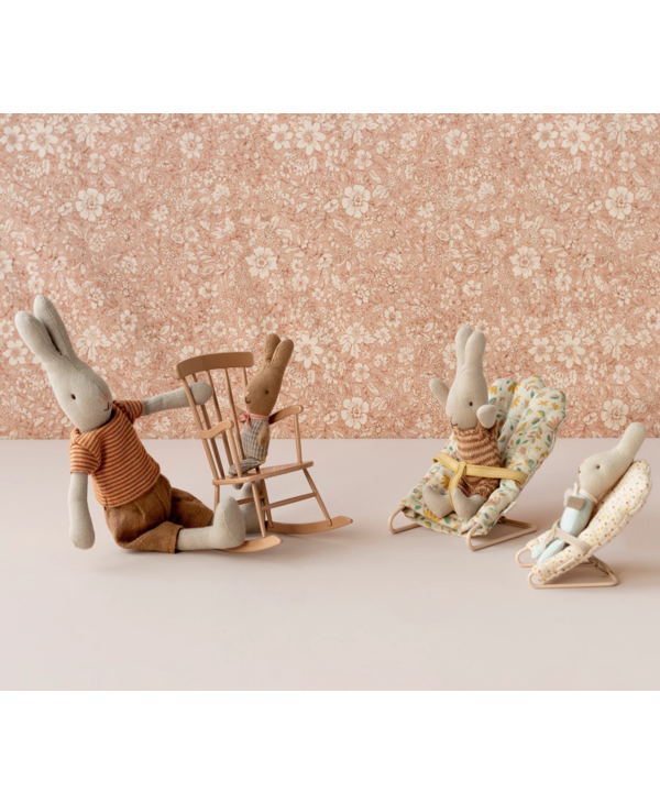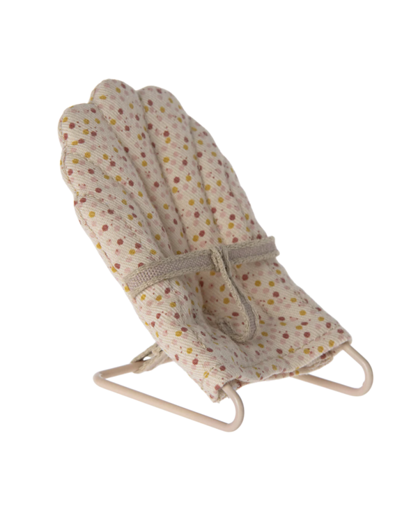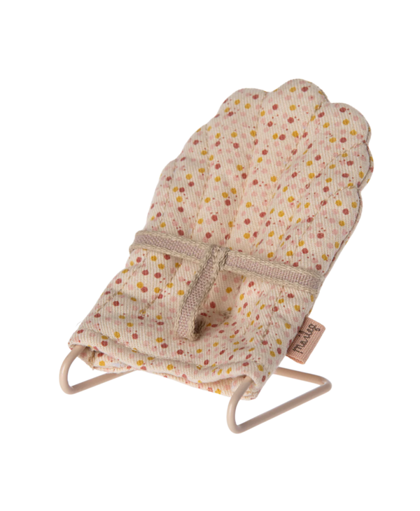 With this baby sitter, it is easy to put your little friends to sleep. The base is made of metal and covered by the most lovely fabric. The chair fits my sized rabbits and baby mice perfectly.