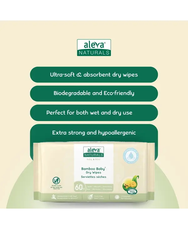 Pamper your baby’s skin with Bamboo Baby Dry Wipes. Made from 100% pure bamboo fibers, these wipes offer a soft, hypoallergenic touch that’s gentle on your baby’s delicate skin. Ideal for sensitive areas and on-the-go, they provide a clean and eco-friendly solution without any added ingredients. These wipes are perfect for both wet and dry use, making them an essential addition to any household. Gently cleanse your baby’s delicate skin or tackle everyday messes around the house with ease. Whether you’re refreshing your baby, wiping down surfaces, or handling spills, these eco-friendly wipes are up to the task.