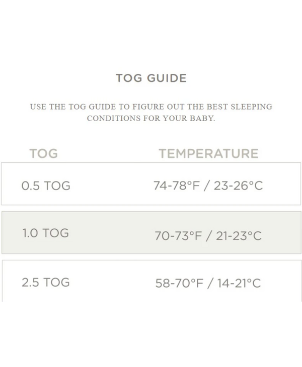 - 1.0 & 2.5 tog have hypoallergenic microfiber fill that mimics the feel and insulating ability of luxury down. 0.5 tog does not have any fill, for warmer temperatures. Please refer to our tog guide to choose the best tog for your LO.