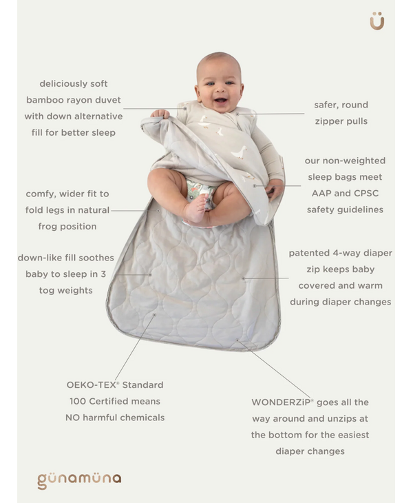 The only thing cozier: the womb. Down Alternative fill wrapped in silky soft bamboo rayon keeps your little nugget secure while our one-of-a-kind WONDERZiP® keeps them covered, even during diaper changes. Our 1.0 TOG sleeping bag keeps baby warm, snuggly, and most importantly asleep all night. So get ready to sleep a lot. Like, a lot a lot.