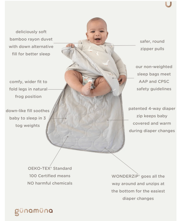 The only thing cozier: the womb. Down Alternative fill wrapped in silky soft bamboo rayon keeps your little nugget secure while our one-of-a-kind WONDERZiP® keeps them covered, even during diaper changes. Our 1.0 TOG sleeping bag keeps baby warm, snuggly, and most importantly asleep all night. So get ready to sleep a lot. Like, a lot a lot.