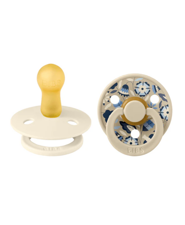 The BIBS pacifier has been a classic for moms and babies for over 30 years.  Due to its naturally safe and durable rubber material, the BIBS pacifier has been trusted by moms worldwide for decades.  Teach your baby to self-soothe with this pacifier that mimic's mom's breast in both comfort and feet.  The BIBS pacifier is 100% free from BPA, PVC, and phthalates. Designed and manufactured in Denmark. Their classic appearance captures a look that's both timeless and elegant. Available in a 2 pack in a variety of colors - collect them all to ensure your baby's look is coordinated!