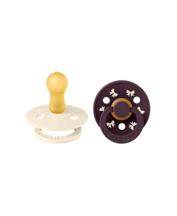 The BIBS pacifier has been a classic for moms and babies for over 30 years.  Due to its naturally safe and durable rubber material, the BIBS pacifier has been trusted by moms worldwide for decades.  Teach your baby to self-soothe with this pacifier that mimic's mom's breast in both comfort and feet.  The BIBS pacifier is 100% free from BPA, PVC, and phthalates. Designed and manufactured in Denmark. Their classic appearance captures a look that's both timeless and elegant. Available in a 2 pack in a variety of colors - collect them all to ensure your baby's look is coordinated!