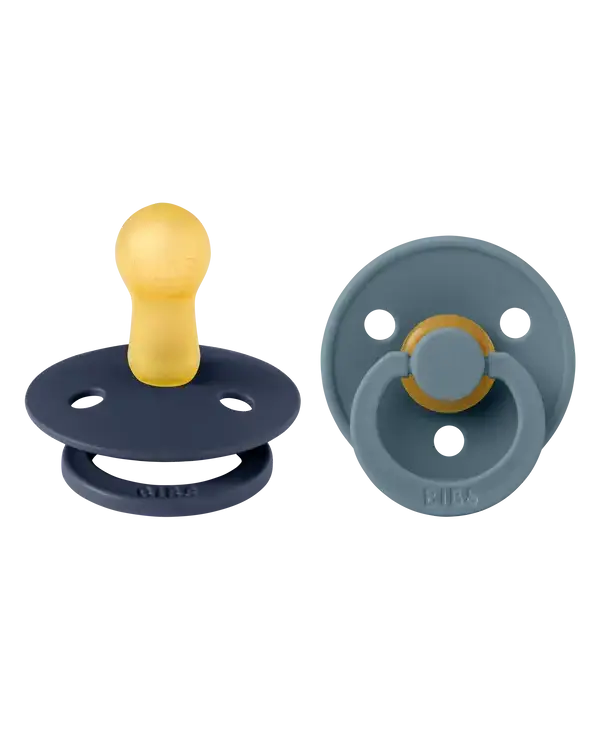 The BIBS pacifier has been a classic for moms and babies for over 30 years.  Due to its naturally safe and durable rubber material, the BIBS pacifier has been trusted by moms worldwide for decades.  Teach your baby to self-soothe with this pacifier that mimic's mom's breast in both comfort and feet.  The BIBS pacifier is 100% free from BPA, PVC, and phthalates. Designed and manufactured in Denmark. Their classic appearance captures a look that's both timeless and elegant. Available in a 2 pack in a variety of colors - collect them all to ensure your baby's look is coordinated!
