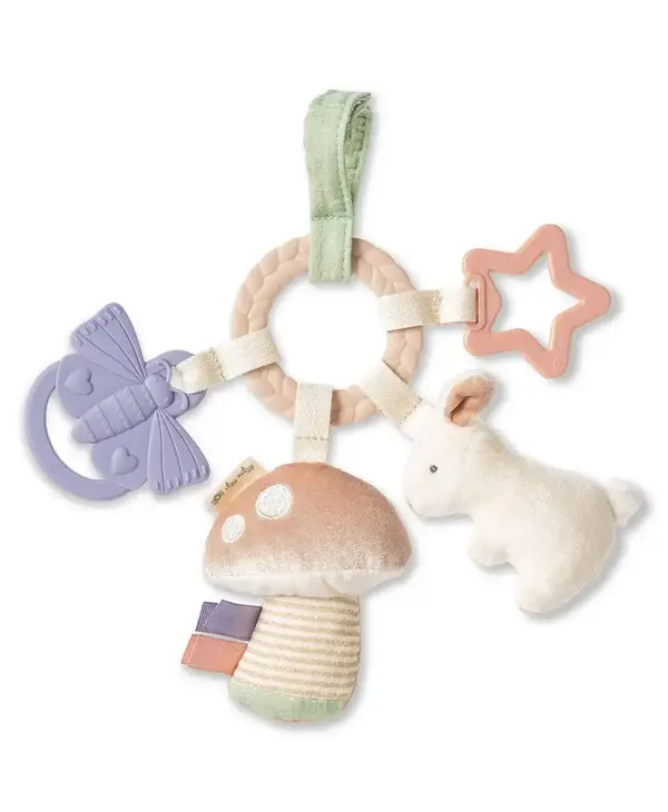 Teethe, Play & Explore! A sensory sensation, our Bitzy Busy Ring has all the love in the details with multiple features for baby to explore. Textured teethers and dangling toys that jingle, crinkle and delight – easily attach this toy to baby’s car seat or stroller for adventures ahead!