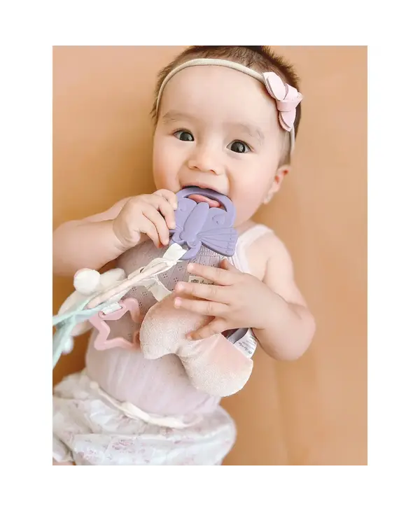 - Features natural cotton fabric and soft velour, two soft teethers and grasping star, a jingle bell, crinkle and ribbons