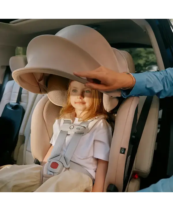 The Callisto G 360° functions as a rear-facing infant seat, forward-facing harness seat, and high-back booster, supporting children from 4 to 120 lbs. Features like a 12-position adjustable headrest, removable multi-stage infant insert, oversized UPF 50+ canopy, all-around air ventilation, and two integrated cup holders ensure comfort at every stage.