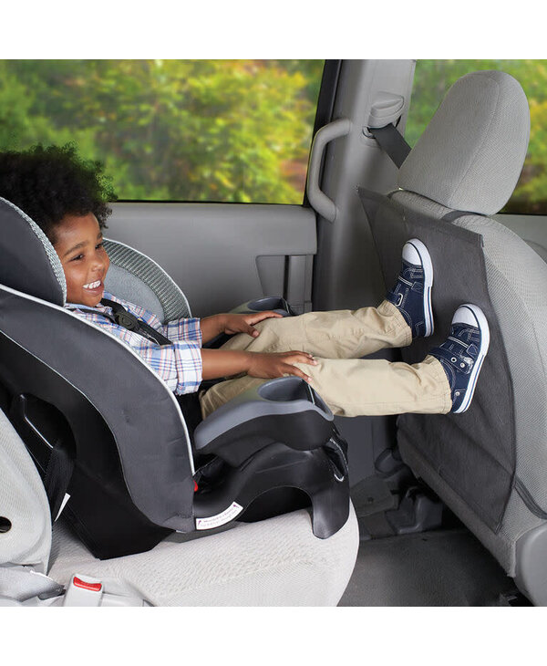 Help keep your vehicle's seat backs in pristine condition with the Nuby kick mats. The kick mats protect car seats from shoe prints & marks, and easily attach to the back of any car seat. A convenient essentials pocket offers extra storage possibilities and the mats can be wiped clean with a damp cloth, until they meet up again with active little feet!