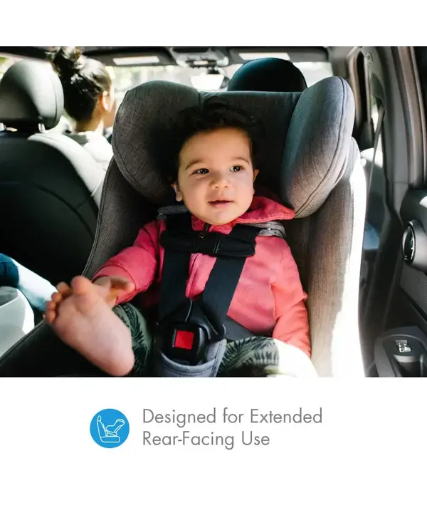 The Clek Foonf convertible car seat is designed for both revolutionary forward-facing safety performance and extended rear-facing use, allowing for most kids to remain rear-facing until their fourth birthday.