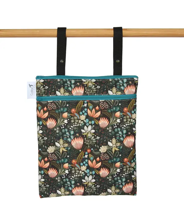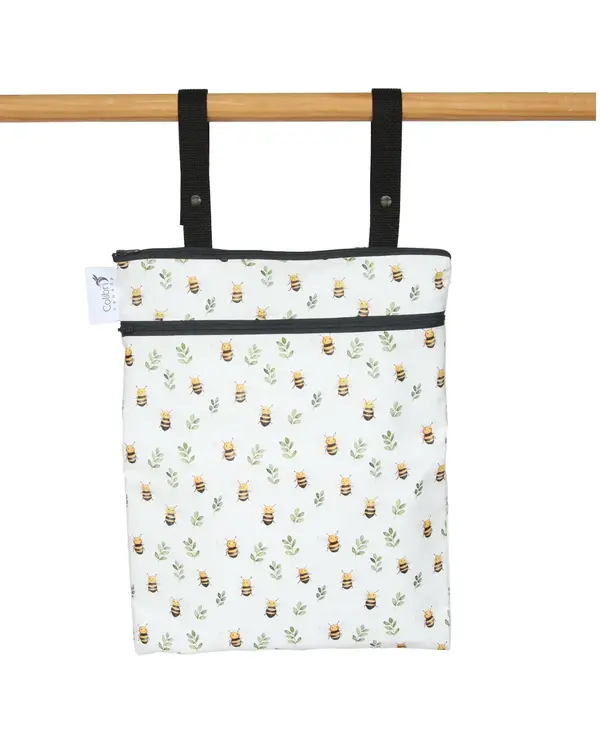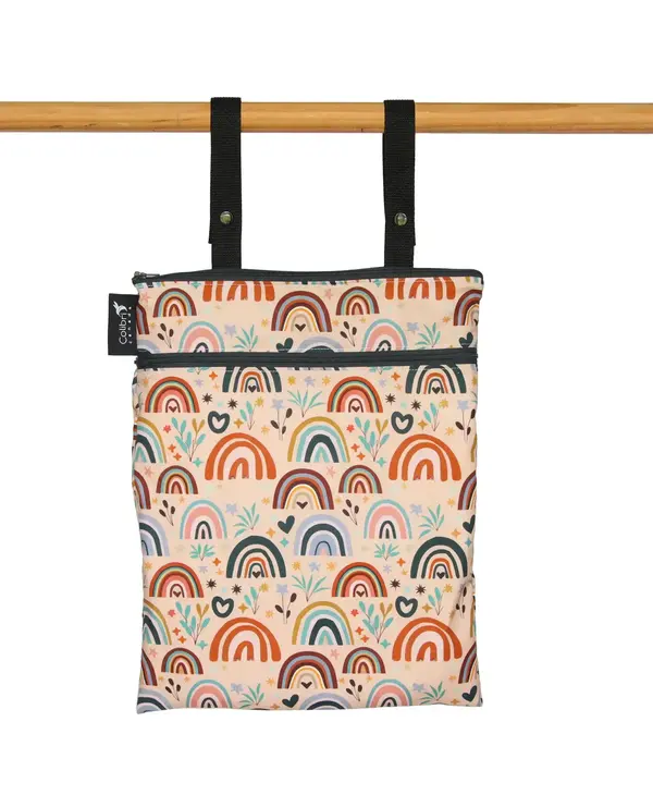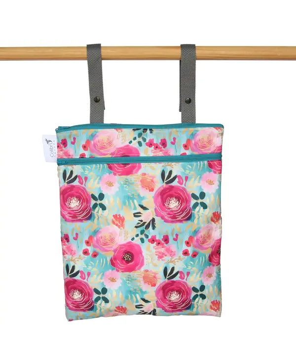 There's no more worry about where to keep your bathing suit after a swim. Our regular sized double-duty bag has a zippered, waterproof pocket to make sure your wet stuff stays put. The two straps allow the bag to hang on towel rods, furniture, luggage, strollers and more, or can be looped together to form a carry handle.