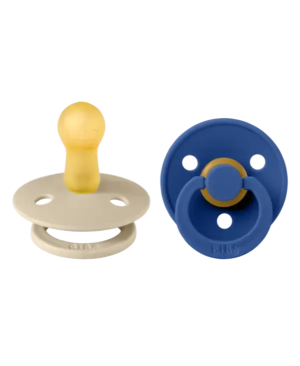 The BIBS pacifier has been a classic for moms and babies for over 30 years.  Due to its naturally safe and durable rubber material, the BIBS pacifier has been trusted by moms worldwide for decades.  Teach your baby to self-soothe with this pacifier that mimic's mom's breast in both comfort and feet.  The BIBS pacifier is 100% free from BPA, PVC, and phthalates. Designed and manufactured in Denmark. Their classic appearance captures a look that's both timeless and elegant. Available in a 2 pack in a variety of colors - collect them all to ensure your baby's look is coordinated!