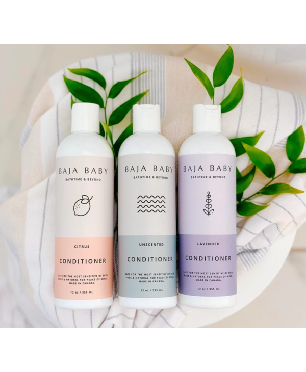 After washing your child with Baja Baby Shampoo & Body Wash, apply a small amount of Baja Baby Organic Conditioner to your child’s hair, then rinse. Work the product into the ends of the hair, rather than applying directly on the scalp.