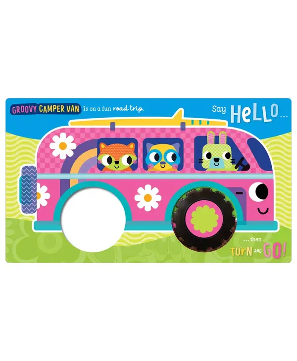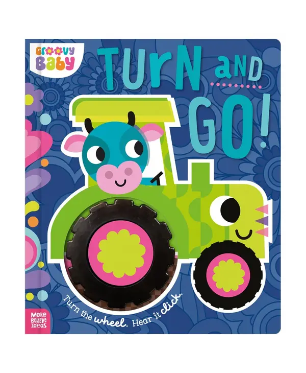 Say hello to each busy vehicle, then turn the wheel and go, go, go! Part of our Groovy Baby range, this interactive board book boasts a novelty clicking wheel and a beautiful retro-inspired design. Children will love turning the wheel and hearing it click as they send each colorful vehicle on its way!