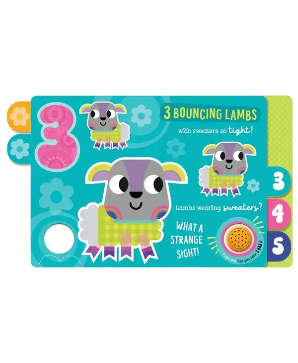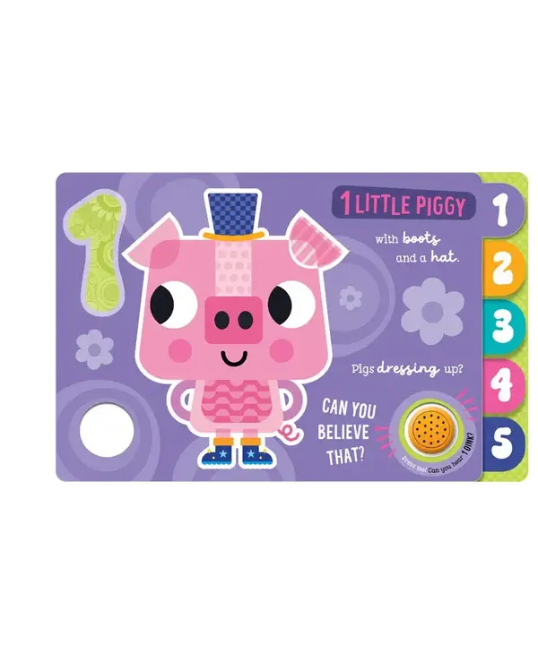 12 page board book with a sound button die-cut through to the cover and tabs throughout.