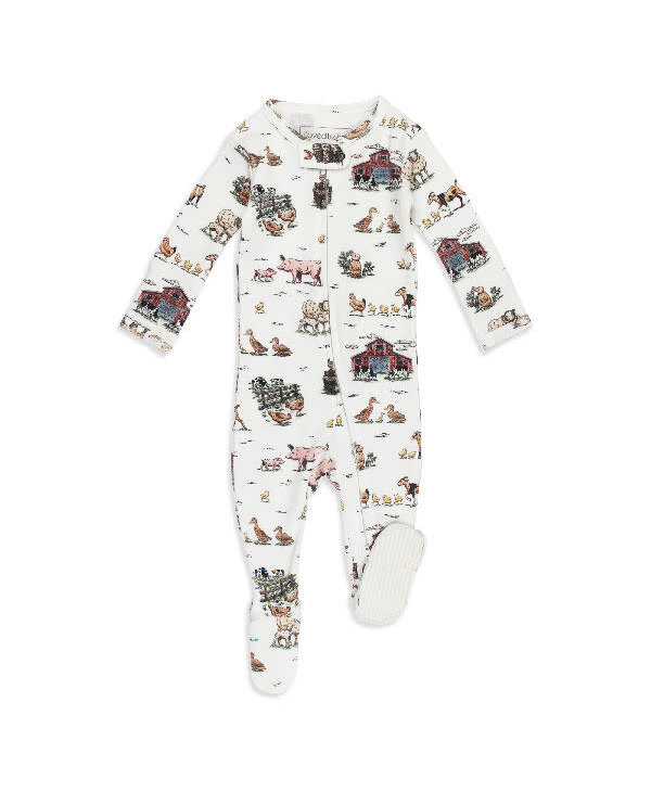 Organic Zipper Footie - Farm Friends