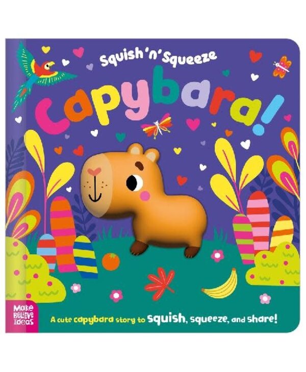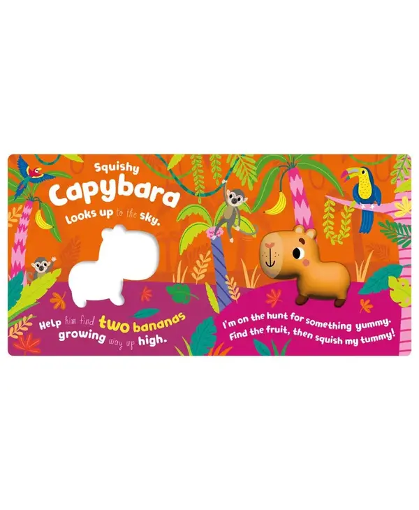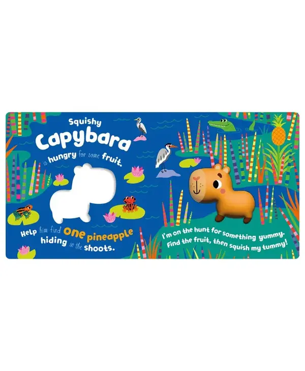 Join Squishy Capybara on a fruity search-and-find adventure. This adorable book has a capybara-shaped squishy cut through to the cover and sweet rhymes to keep little ones engaged and entertained. Don't forget to give him a squish on every page!