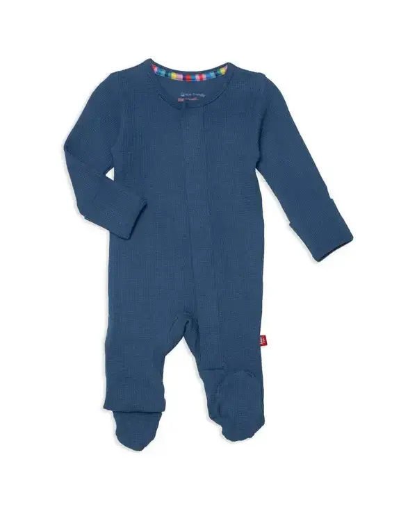 Our organic cotton Magnetic Footie, designed with magnetic closures, is a quick and quiet lifesaver for all-day and middle-of-the-night diaper changes—that's up to 12 times a day (!). Made from GOTS certified organic cotton, this sleeper is so soft, breathable, and gentle on sensitive skin.