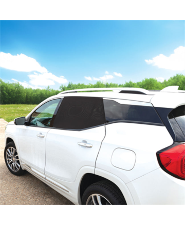 WINDOW SHADE. Ensure product completely covers window frame when installed. May not fit all vehicle types. Check to ensure product does not block driver's view. Use with caution. Be aware of local laws concerning automobile windows and driver visibility.