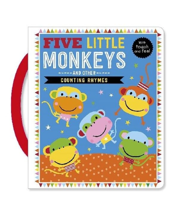 Introducing Five Little Monkeys, an adorable book full of counting rhymes for young children. Children will love turning the pages and counting down with the sweet rhymes, and the touches are fun for little hands to explore. 12 page padded board book with handle. Dimensions 6 x 5 x 0.8 inches.