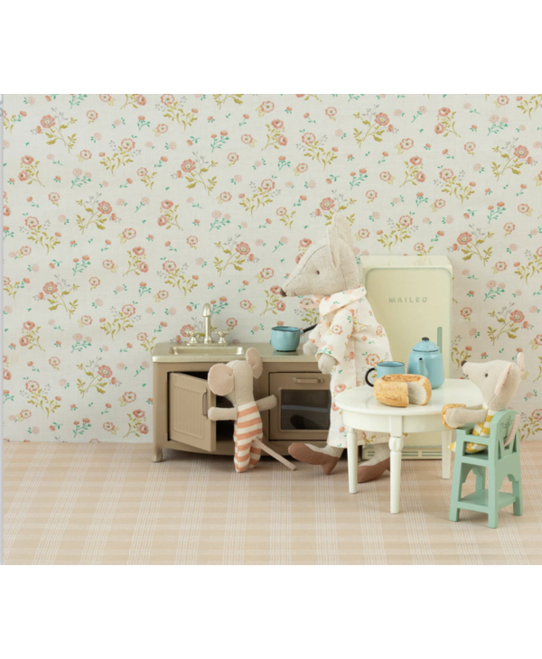 A classic Maileg accessory for baby mice. This high chair is a must have for all families with babies so the small one can participate in the meals.