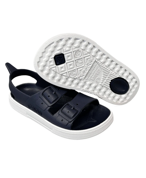 Parents and 7th-generation shoe manufacturers, we created these BOATILUS sandals to be 100% recyclable. Made from BoAtigum®, our exclusive Italian eco-composite material combining recycled PET and natural calcium that replaces up to 34% of normal chemical components. Ultra-flexible, durable, and scented with lemon zest - an Italian food-grade essence (*diluted to 5°/°°) which is naturally antimicrobial. Top comfort — no blisters!