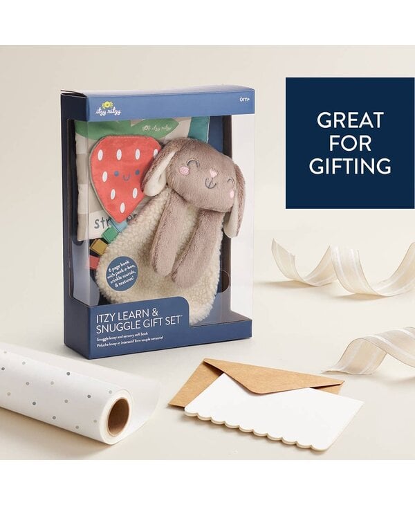 Love is in the details with our Itzy Learn & Snuggle Gift Set™! Featuring our Itzy Lovey™ and Bitzy Busy Book™, this gift set is a sensory sensation. Snuggle in close with the soft Sherpa on the Itzy Lovey™. Easily attach the Bitzy Busy Book™ to a car seat or stroller for adventures ahead! The textured pages with crinkle sounds are sure to delight!