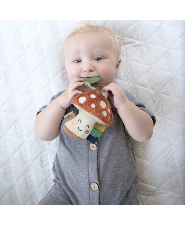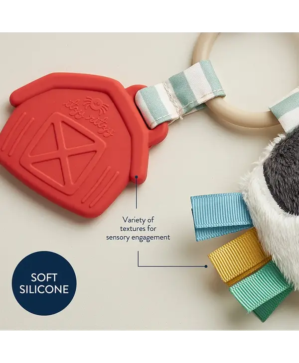 Engaging crinkle sounds and colorful textured ribbons for busy hands.