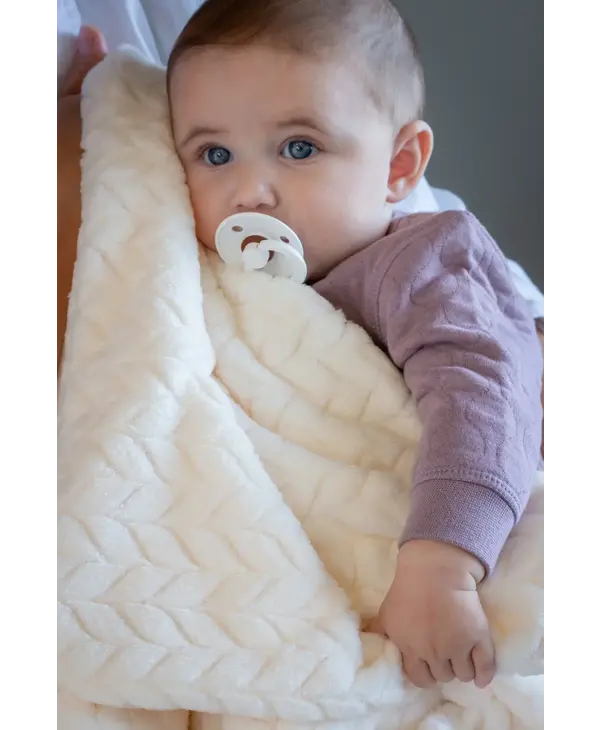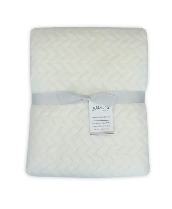 Take cozy to the next level with this luxuriously plush baby blanket featuring a double-layered jacquard weave. The velvety soft texture provides a feeling of warm security while the generous size ensures plenty of snuggle room. The textured elegance of this piece is a beautiful complement to any space. Makes a wonderful baby gift. 30" x 40". 100% polyester. Machine washable.