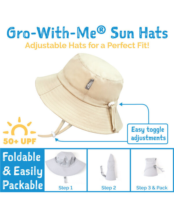 Stay sun-safe in style with this timeless bucket hat design! The Cotton Bucket Hats provide full coverage protection while staying up out of the face with reinforced stitching. Thoughtfully designed by moms, this Gro-With-Me® sun hat grows with your child with a fully adjustable head drawstring and chinstrap. Enjoy peace of mind knowing your child will be safe from the sun’s harmful rays with 50+ UPF sun protection!