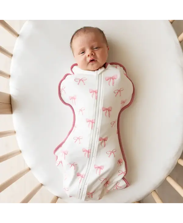 This fuss-free swaddle keeps your baby snug and safe as they adjust from womb to world. Crafted from an ultra soft, breathable bamboo fabric with built-in stretch, the swaddle bag is designed to let your little one’s arms rest in a natural, preferred position. No wrapping, tucking, or tricks required—simply open the swaddle bag, place your baby on top with their arms folded across the chest, and zip to close. The lightweight, thermoregulating fabric feels like a gentle hug for comfort and safety, while the hip-friendly design ensures proper development.