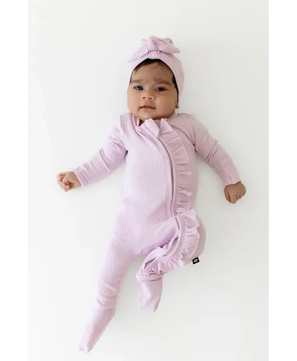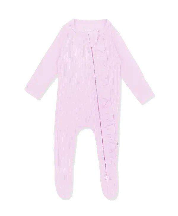 Keep your little one snug as a bug during the cold months with this ribbed footie made from soft, thick bamboo. The stretchy knit fabric is breathable to prevent overheating, while ruffling along the zipper adds a charming touch.