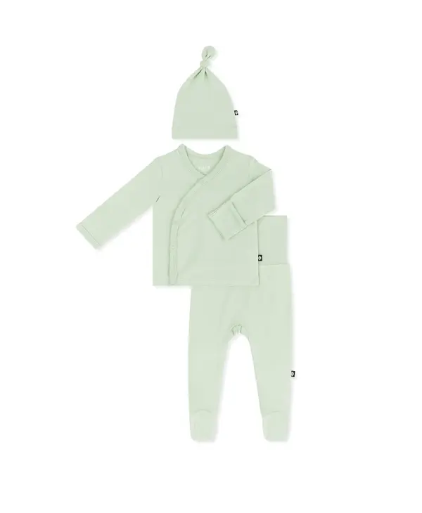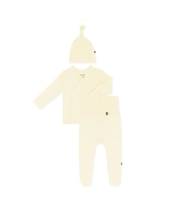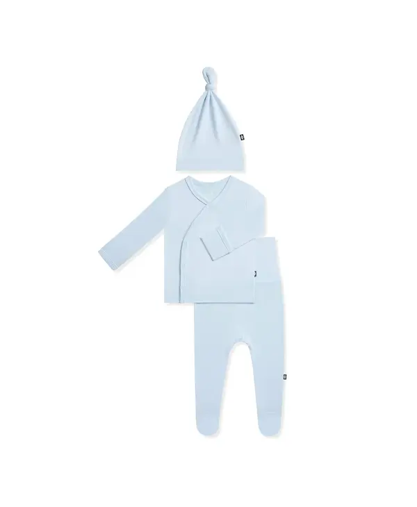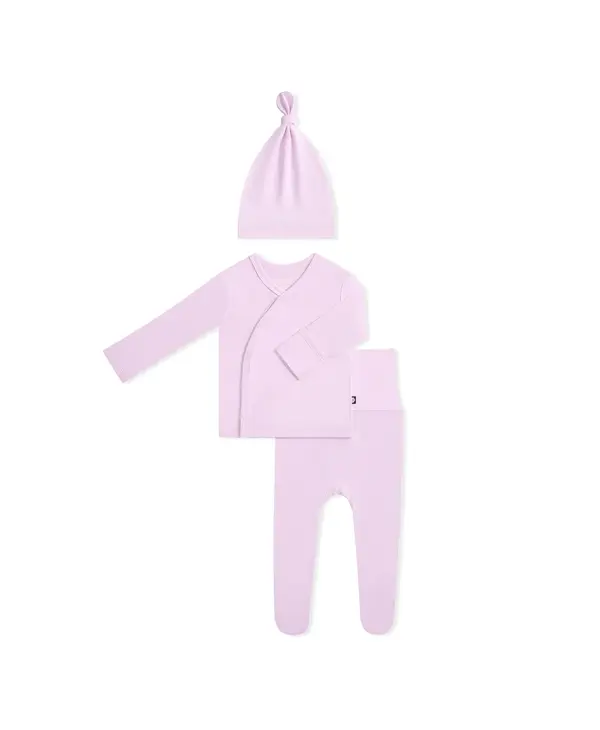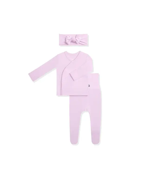 Welcome your newborn with the perfect outfit to mark the occasion. This ultra-soft set features a kimono style top that’s gentle and non-irritating on your baby’s umbilical cord stump, footed pants to cover those tiny toes, and a stretchy cap/bow.