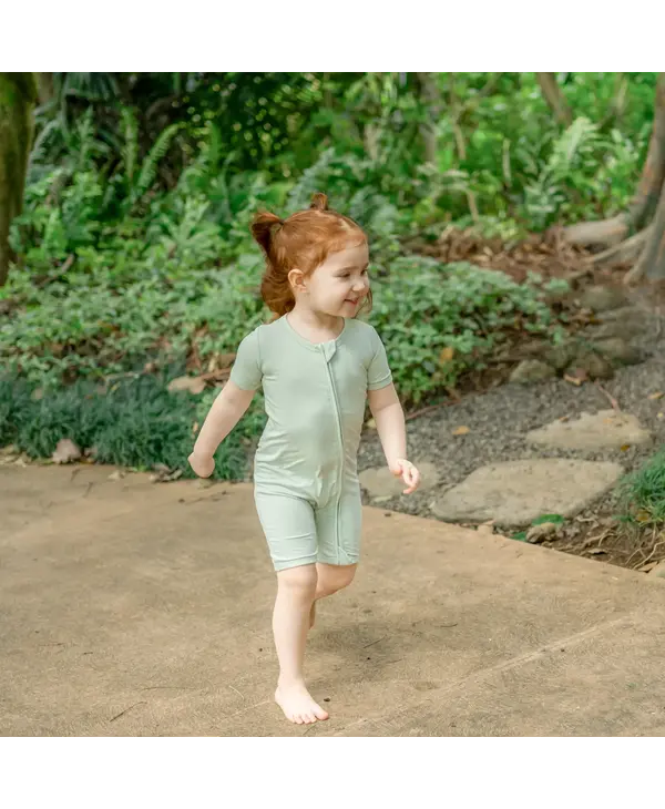 Made from soft, breathable bamboo rayon, this easy-to-wear shortall romper keeps little ones comfortable for sleep and play. Zippered for convenience and stretchy for easy movement, this one piece outfit is the softest addition to their warm weather wardrobe.