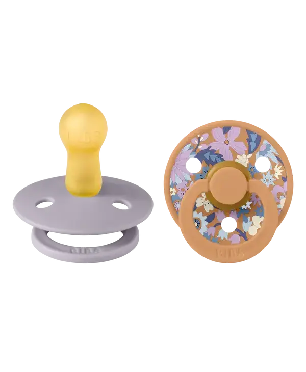 The BIBS pacifier has been a classic for moms and babies for over 30 years.  Due to its naturally safe and durable rubber material, the BIBS pacifier has been trusted by moms worldwide for decades.  Teach your baby to self-soothe with this pacifier that mimic's mom's breast in both comfort and feet.  The BIBS pacifier is 100% free from BPA, PVC, and phthalates. Designed and manufactured in Denmark. Their classic appearance captures a look that's both timeless and elegant. Available in a 2 pack in a variety of colors - collect them all to ensure your baby's look is coordinated!