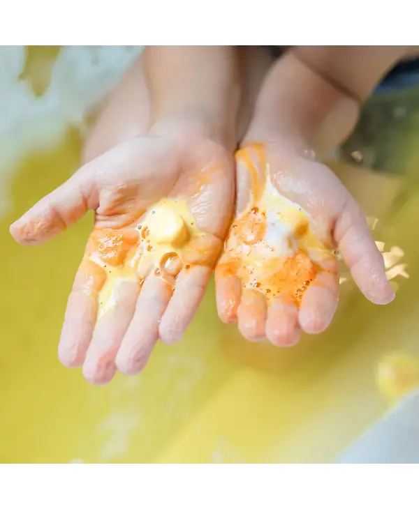 Ingredients: Sodium Bicarbonate, Citric Acid, Corn Starch, Sodium Lauryl Sulfoacetate, Non-GMO Grapeseed Oils, Organic Colloidal Oats, Cocomidopropyl Betaine, Essential and Fragrance Oils, FD&C Yellow 5, FD&C Yellow 6, D&C Red 33.