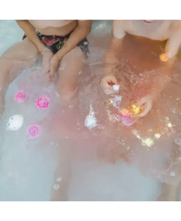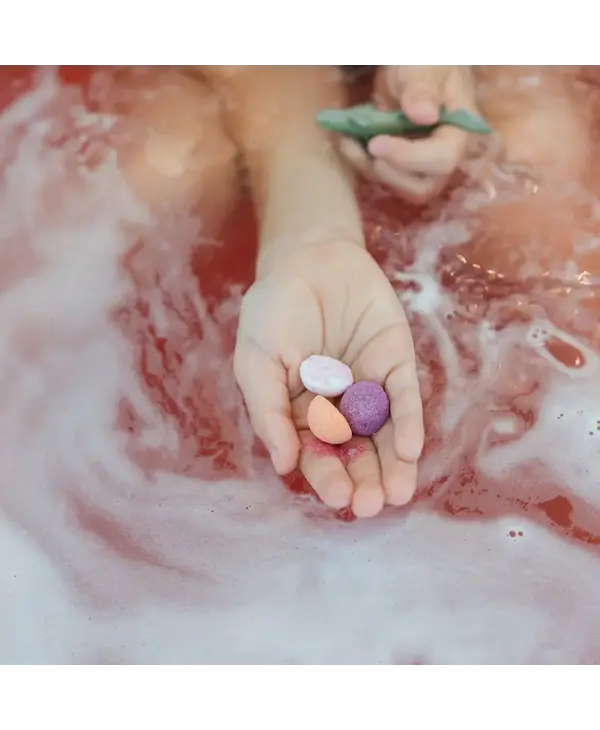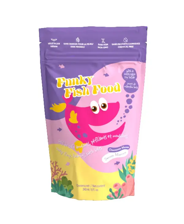Funky Fish Food is a skin-friendly foaming bath salt that will turn the bathtub into the most colourful ocean in the world! As the droplets rise to the top, delight in the beautiful patterns they create!