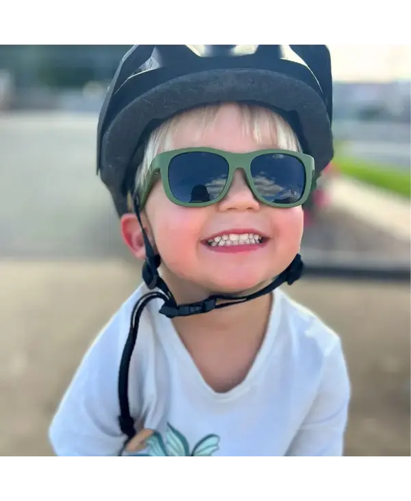 Meet our Eco Collection in the earthy Wild Moss Navigator frame—designed for kids who love a cool, nature-inspired look. Crafted from 100% recycled, ocean-bound plastic, these eco-conscious sunglasses provide dependable UV protection while helping cut down plastic waste and protect our seas. Lightweight, durable, and sustainably made, they’re perfect for daily wear and outdoor fun.