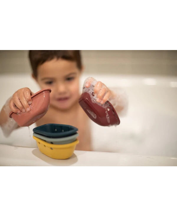 Float, scoop, and sift with the noüka Silicone Stacking Boats during bath time and water play.