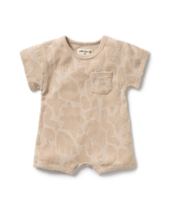 Wrap your little one in comfort and style with our Organic Cotton Terry Toweling Growsuit! The lightweight, roomy fit and soft elasticated leg openings make it perfect for summer, while the all over pattern adds a touch of cuteness. With snaps at the crotch for easy nappy changes, it's practical too!