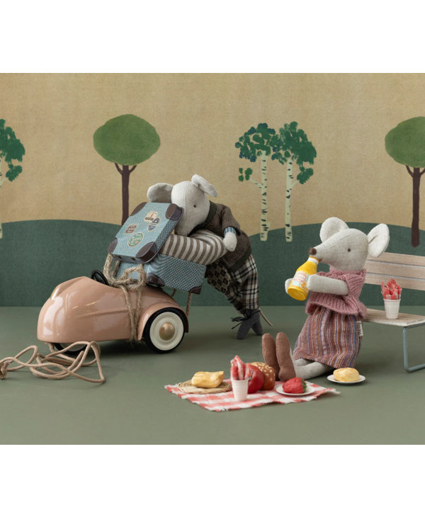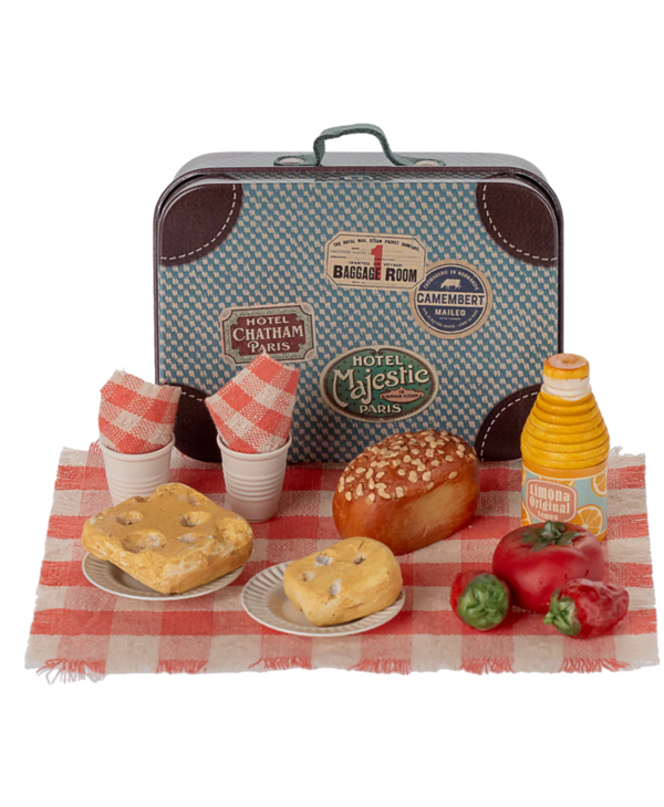 Bring your friends on a picnic no matter if it is in the forest, garden or playroom. This set comes in a small metal suitcase and includes all you need for food and tableware for a lovely meal. Small variations may occur in the painting.