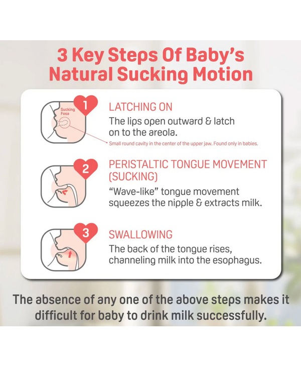 • RESEARCH ON BABY'S SUCKING BEHAVIOR: It is based on research on the 3 natural movements that a baby does while feeding in Japan.