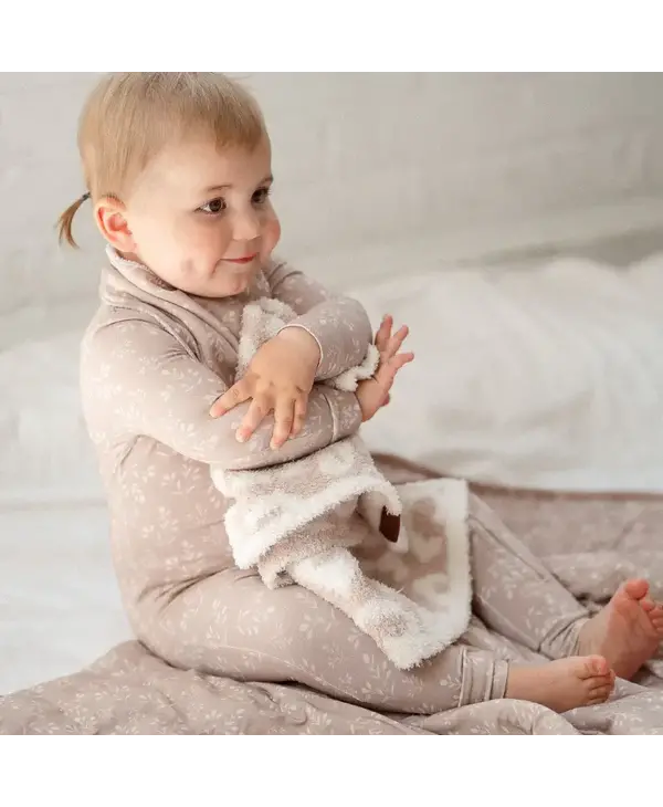 The large is generously sized at 50" x 60", and the lovey is a perfect size for tucking around the car seat or stroller on little babies at 15" x 20". It is sure to become your child's favourite comfort item.