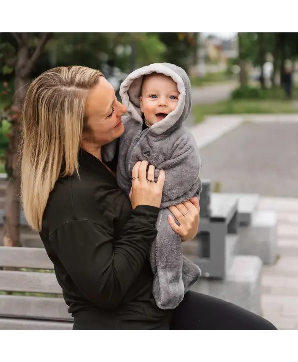 NEW! My cozy bundler. With baby’s arrival come the choice of their very first little outdoor suit. We want it to be soft and comfortable to wrap her in all our love. We, therefore, build one of our first memories with baby. Made from recycled plastic bottles, this baby bundler makes it an eco-friendly choice for mid season clothing. Warm & soft, perfect for short outings and mild weather. Use it in the stroller, the car seat cover or in your baby carrier!