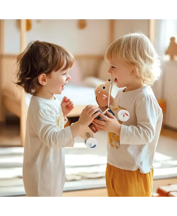 • Meet your little one's new best friend, the Puppy Pull Along! Designed to delight and encourage movement, this adorable wooden puppy rolls along wherever your toddler goes, making it the perfect companion for early walkers and adventurers aged 12 months and up.