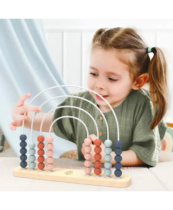 The wooden colorful roller abacus toy encourages your little one to develop hand-eye coordination, color differentiation and improve creativeness.