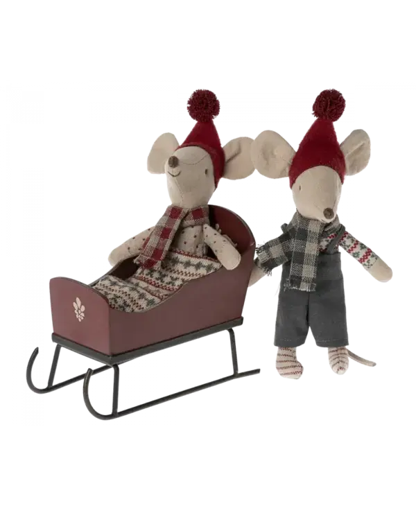 Maileg Mouse Sleigh is a lovely sleigh with a soft mattress to keep the passengers warm and comfortable during the ride. This Maileg Mouse Sleigh fits the smallest friends and mice perfectly. It has beautiful handpainted details - variation may occur.